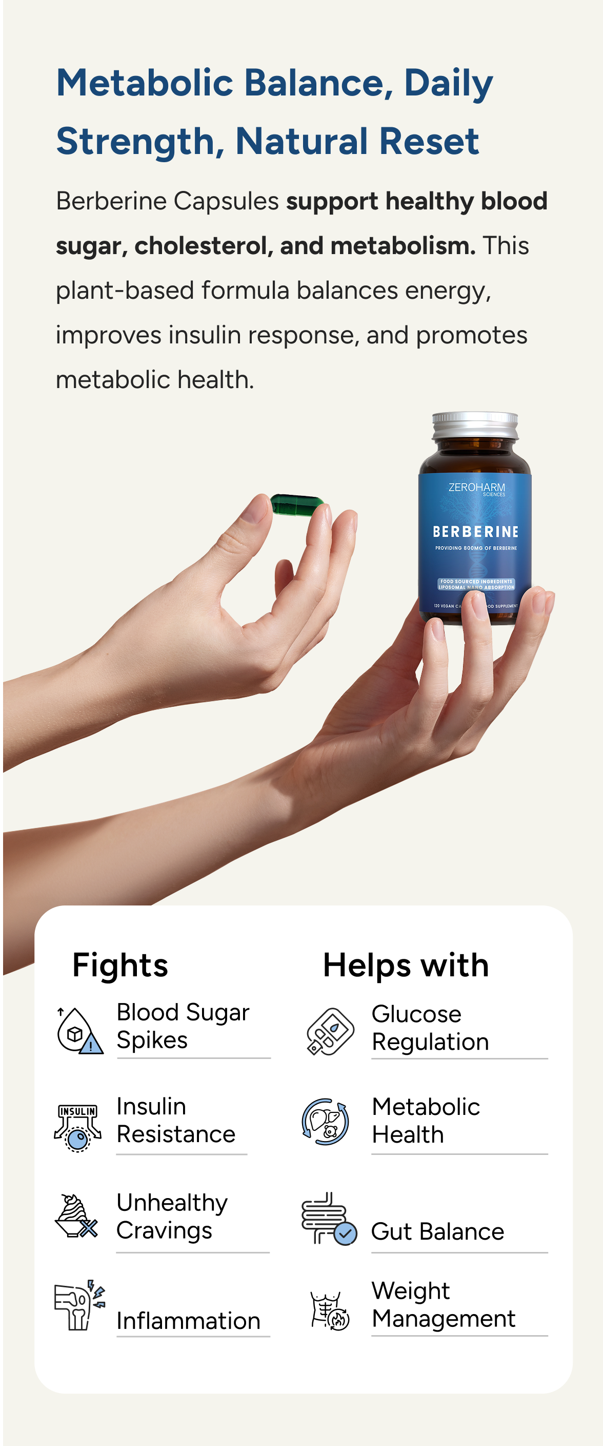 Berberine is a compound derived from Berberis Vulgaris, a plant known for its ability to regulate blood sugar, cholesterol levels, and metabolic health.