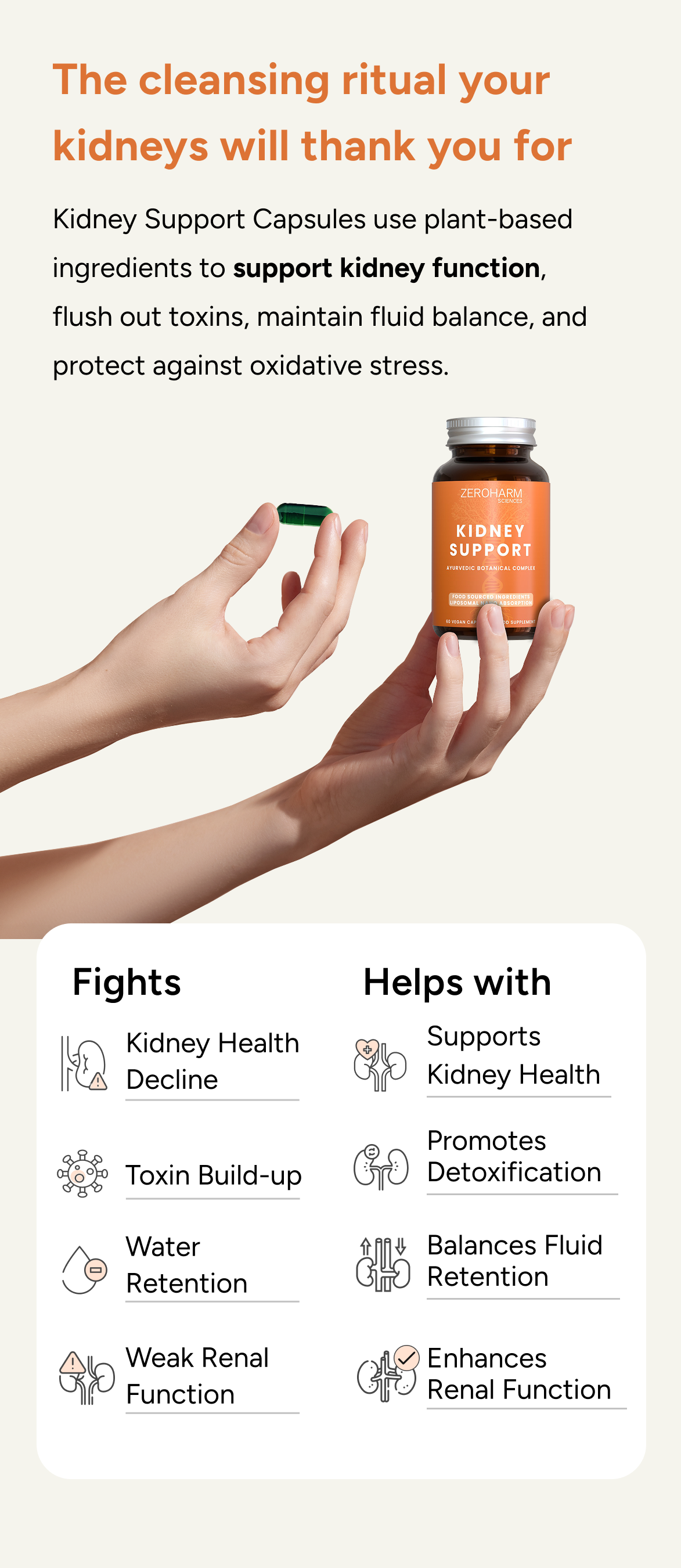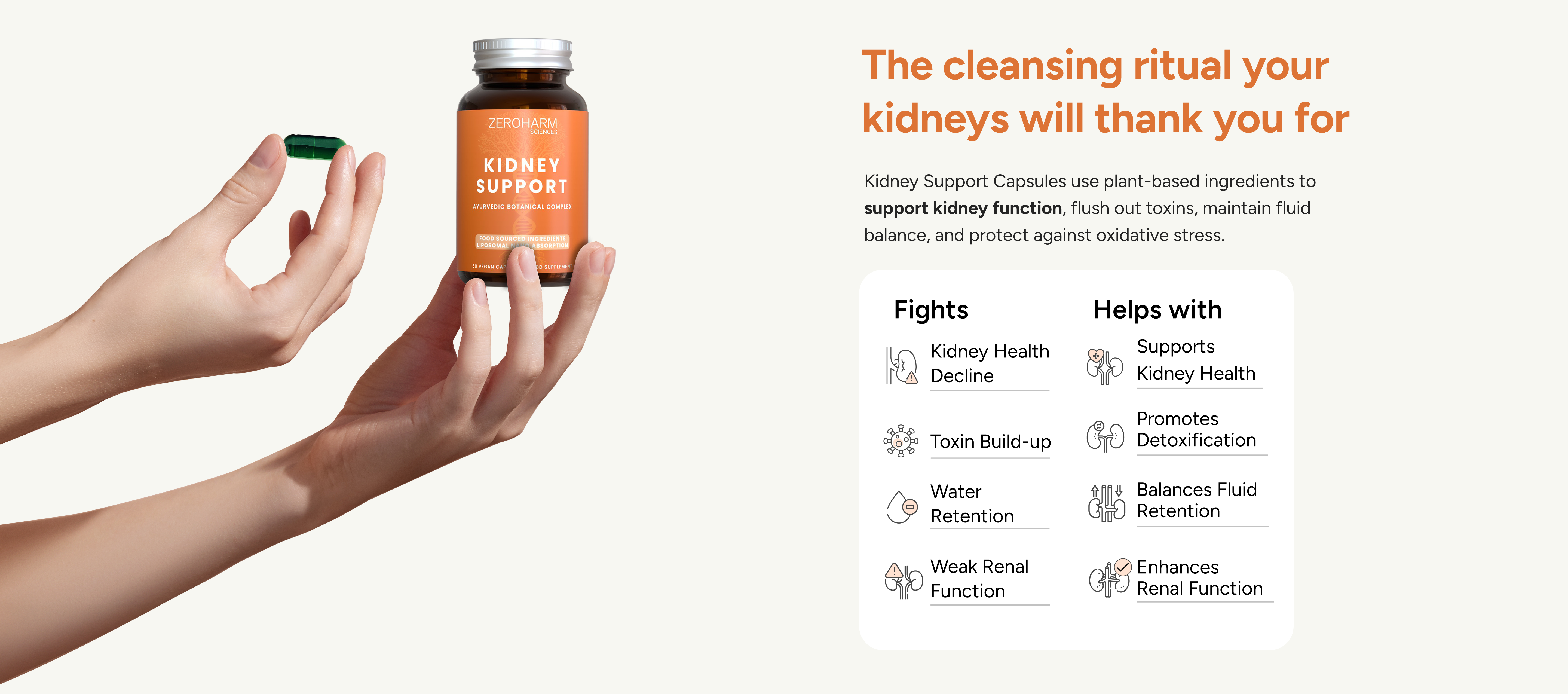 Kidney Support is an Ayurvedic blend of herbs designed to support kidney function, detoxification, and fluid balance, promoting overall kidney health.