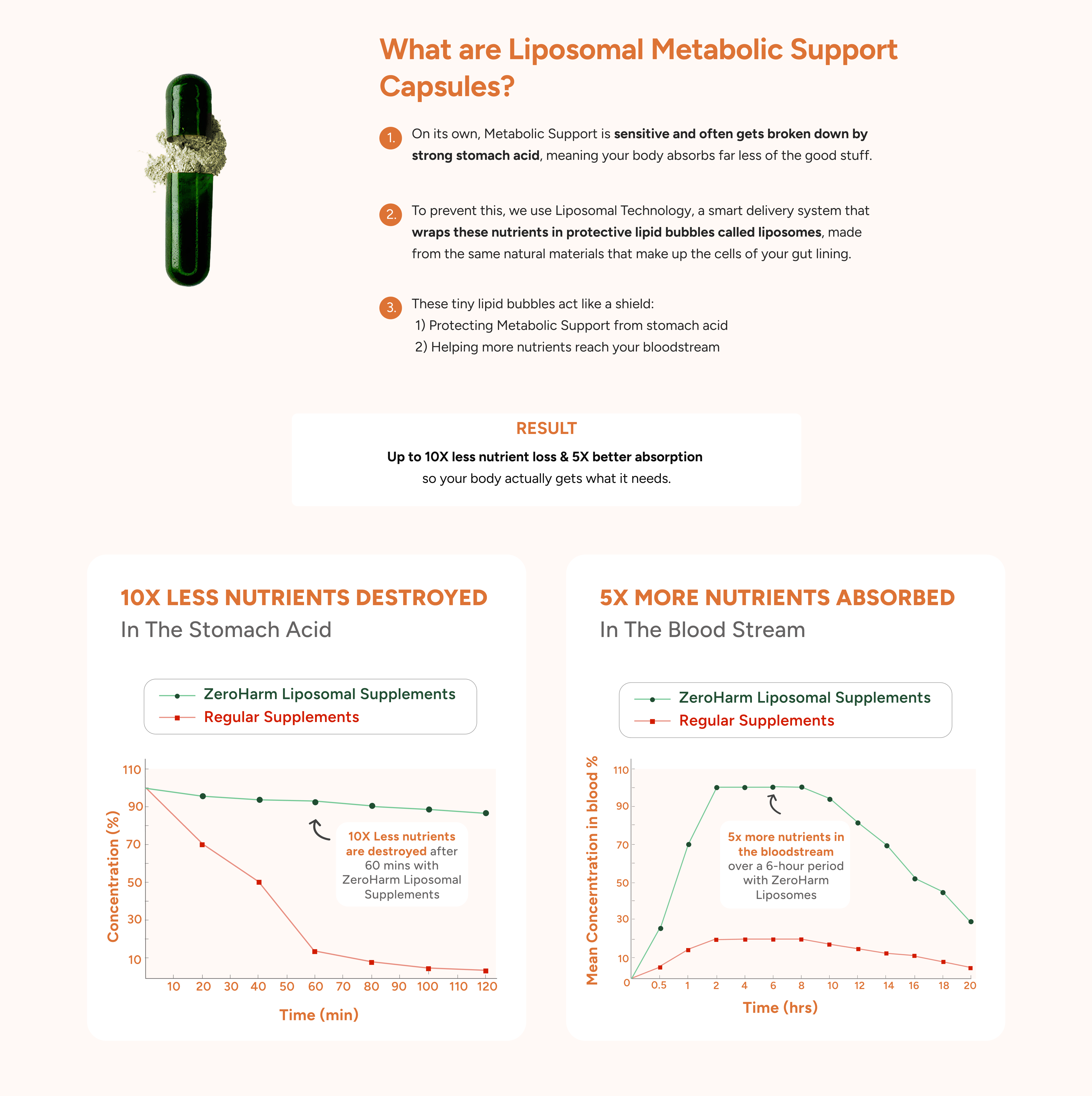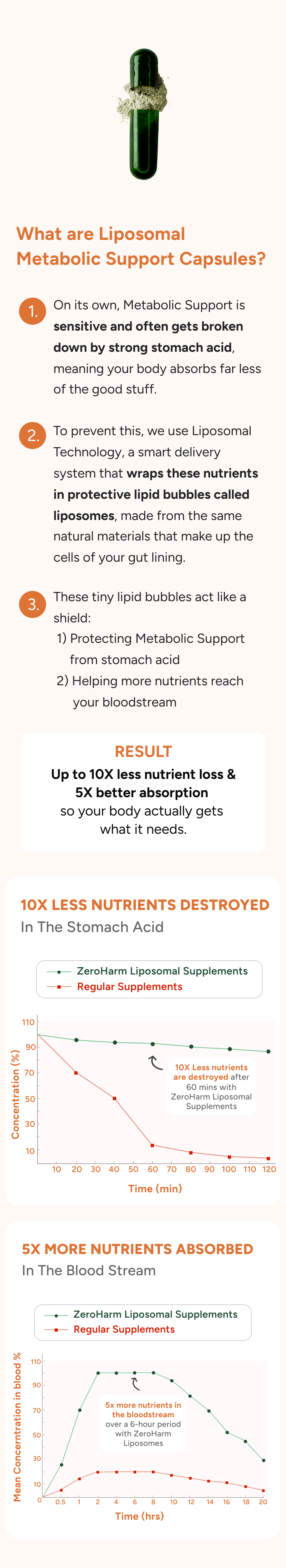 Metabolic Support is a blend of Garcinia Cambogia, Green Tea, Green Coffee, and Apple Cider Vinegar that helps support metabolism, fat burning, and energy production.